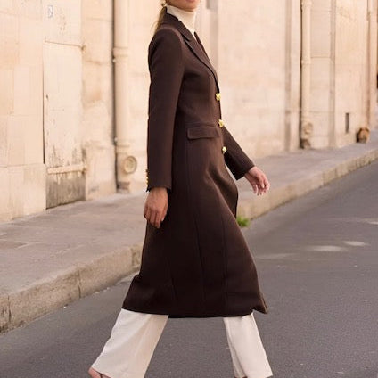 Damen Mantel elegant braun mit goldenen Knöpfen, hochwertig
