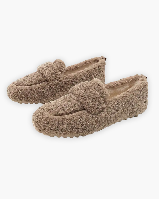 Mokassin Hausschuhe – Kunstplüsch & Gummi – Geschlossene Form – Damen